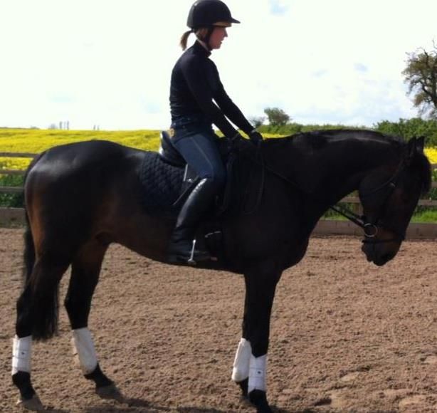 Here's Howitzer, currrently being broken in, just turned 3 - he's bred for eventing, with Hanoverian dressage lines on sire's side, jump racing TB on dam's side. My initial thought was that he has a bit of an upside-down neck, but I've been assured that it's just muscle (not ewe necked) and will develop with exercise..!! Would be interested to hear thoughts from anyone in the know about eventer/sports horse breeding...