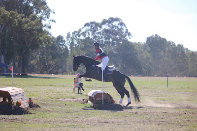 He felt super confident, though looked hard at the log right before the water, but jumped right over. He stopped at a pipe 2 jumps on, I think he was a little distracted by the undulating ground and he didn't work out what was going on until close in. We represented and he jumped it without a care in the world and we trotted to the next jump to give him a good chance to look at it. He didn't worry though and cantered the last few fences like the good boy he is.