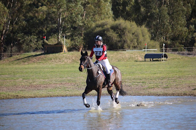 Since it was a Hunter Trials, the first obstacle was a gate so we walked out of the start box and opened and closed the gate like we do every time we go for a trail ride at home. The we were off! We trotted the first jump with no hesitation, landed in canter and bowled along to fence 2. I had the biggest grin on my face, because it all felt easy. For the most part we cantered but if there were any jumps I thought he needed to have a look at I trotted him to. He didn't look twice at anything, cantered right through the water and finished like a seasoned pro.