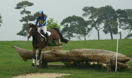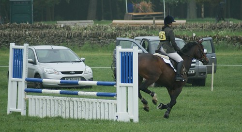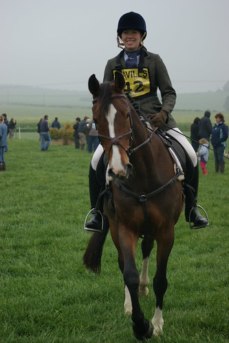 Lastly to XC, I had already decided I would not be chasing time, the aim was a DC (trying to get Blenheim trizone qualifiers ;) ) and a happy horse. Seeing the speed some were taking corners left me cringing I must say. So off we set although not dawdling round I was steadying for corners and being far more concious of turns and footing and not putting my foot down. Overall was a lovely round, she had half a look at the water (i.e. I had to put my leg on and give a 'grrr') but in no danger of stopping, but she did fly far too high over the top of the wall/brush fence meaning we were never going to be able to make the turn to the ski jump without ending up on her side so I brought her back to an almost halt staying in a straight line so she didn't slip then quickly turned and trotted up the ramp and over the mini ski jump, thankfully she is quick off the leg ;)