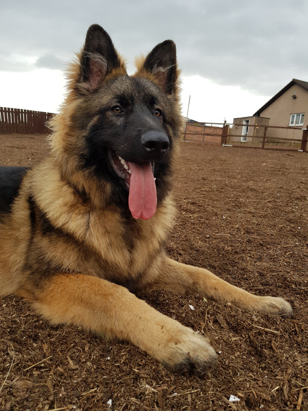 He was the last one left, although I would have picked him anyway. He is robustly healthy at 6.5 years old, and a good size. He is very slim compared to other GSDs - we can't feed him any gluten - but I doubt this relates to him being the runt, it's more that he has super energy levels and burns everything off.