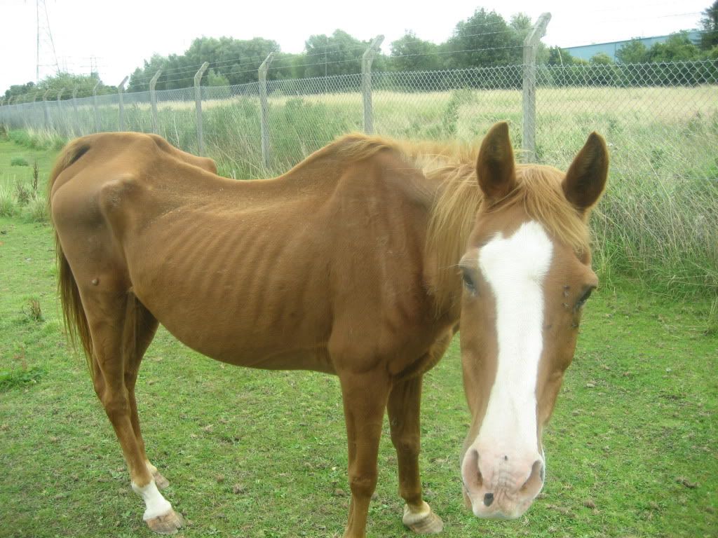 "It has recently come to light that in a field in Stamford, Lincs. there are some severely emaciated horses that were seen by the RSCPA a month ago and were deemed to be ok. However a horse does not loose this much condition in a month. Infact I am surprised one of these paticular horses is still standing.
