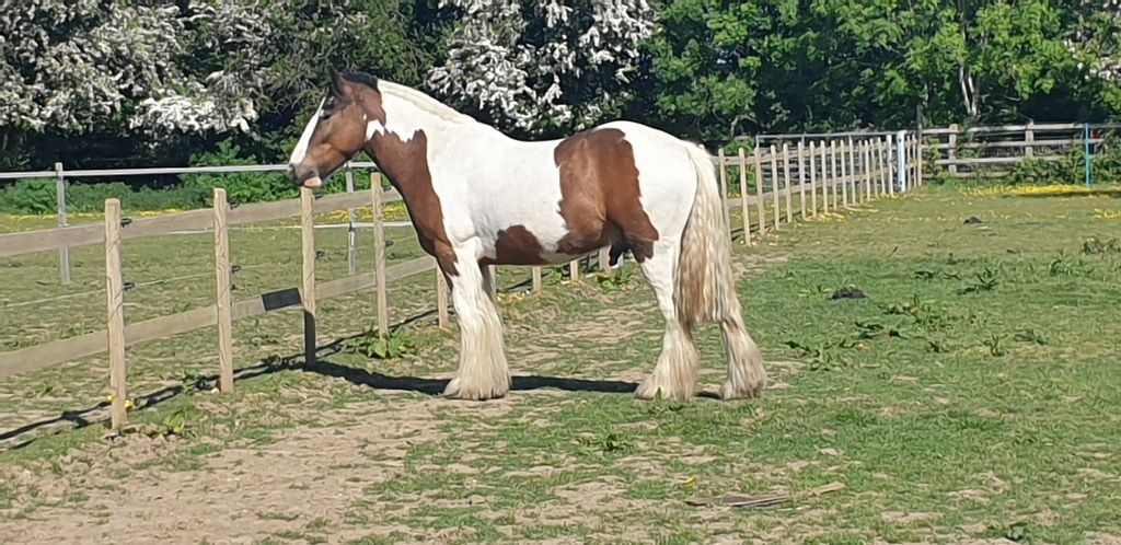 Hello, thank you for taking the time to read my post. I have a 3 year old gelding, who the rescue stated he was a blagdon cob. Some say hes a cob x shire. Some say hes a cob x appaloosa. I don't believe this and wanted second opinions. He is currently standing at 15hh, 15'2 on his bum. And he is so heavy set it's crazy. Please please any ideas?